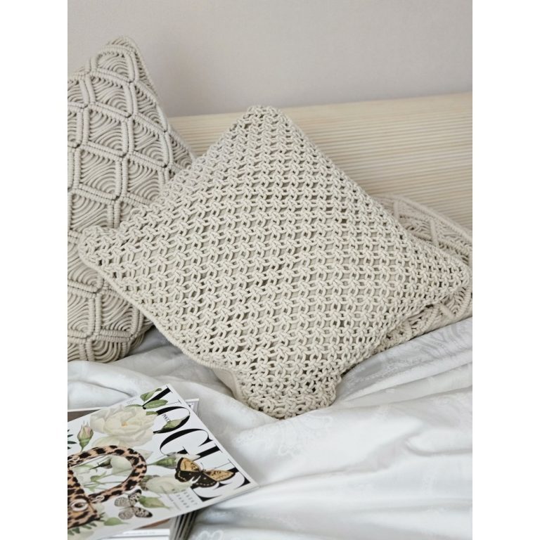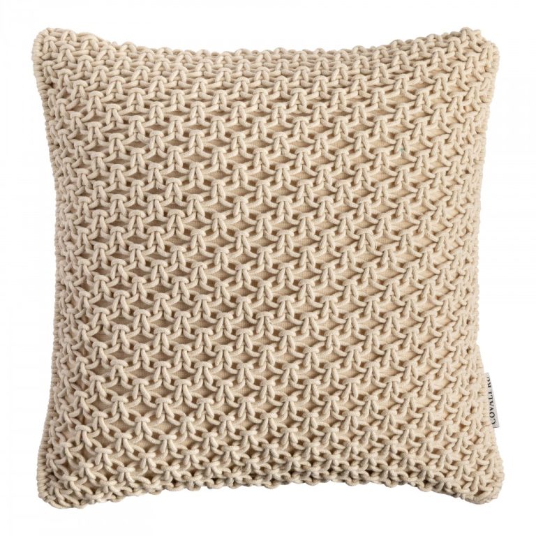 Дизайнерская подушка из высококачественного индийского хлопка со съемным чехлом на молнии станет завершающим акцентом любого интерьера. Лицевая сторона подушки сплетена из хлопкового шнура в стиле макраме. Оборотная сторона подушки однотонная со скрытой молнией. Спокойная цветовая гамма, натуральные материалы , объемное плетение сделают вашу подушку обнимательным и усыпательным дополнением дивана, кресла, детской кроватки.