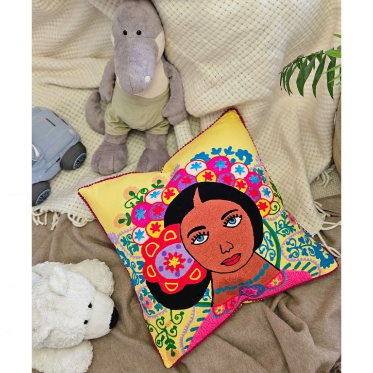 • наволочка: 80% хлопок, 20% шерсть (ручная вышивка), наполнитель: 100% полиэстер Материал