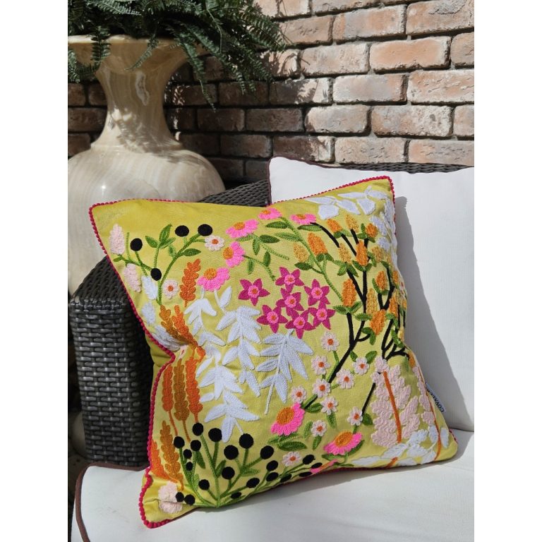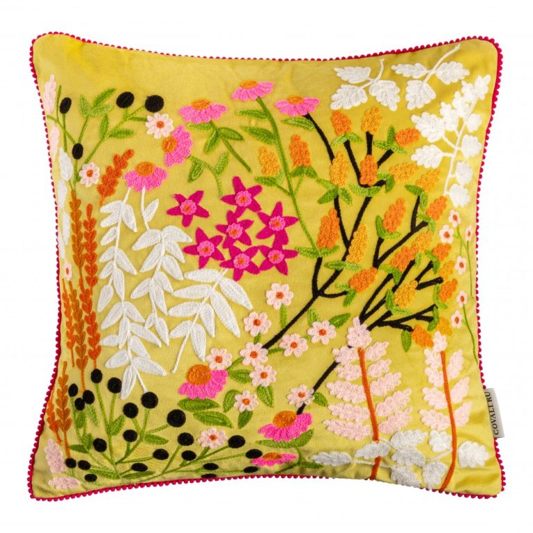 • Наволочка: 80% велюр, 20% шерсть (ручная вышивка), наполнитель: 100% полиэстер Материал