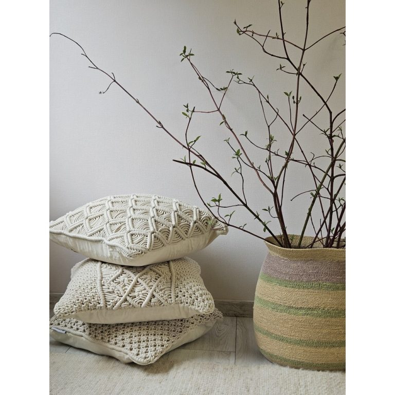 Состав: чехол- 80% хлопок, 20% шерсть (ручная вышивка) ; наполнитель — 100% полиэстер. Уход — рекомендуется сухая чистка. Обращаем ваше внимание, что наполнитель доставляется в вакуумной упаковке. Перед использованием необходимо освободить наполнитель от упаковки для придания подушке объема