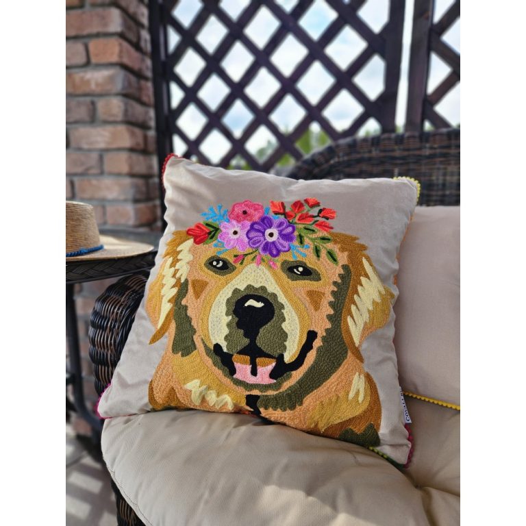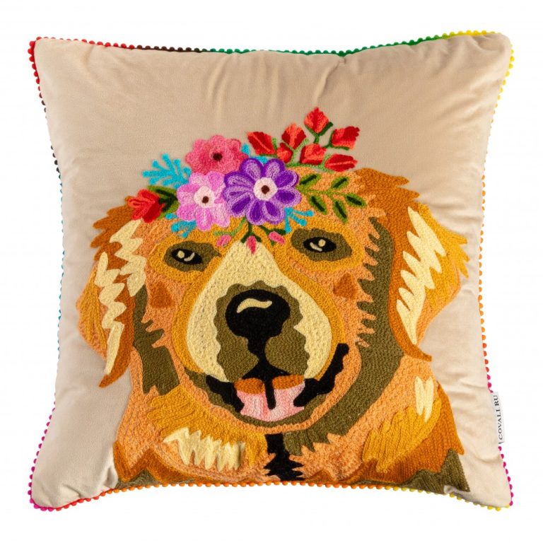 • Наволочка: 80% велюр, 20% шерсть (ручная вышивка), наполнитель: 100% полиэстер Материал