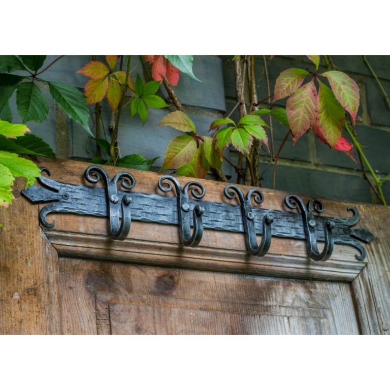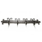 Кованая вешалка «Барашек» с четырьмя крючками станет украшением входной зоны дома, бани или беседки. На брутальном прямоугольном основании с насечками с помощью металлических заклепок крепятся крючки, которые с помощью молота расщеплены и завиты в бараньи рога. Обратите внимания как оформлены края основания вешалки- прямоугольник филигранно вырезан на наковальне с помощью молота. Изделие получилось очень крепким. Вы сможете легко повесить на крючки любое количество вещей, они выдержат любой вес. По краям основания есть отверстия для саморезов. (крепеж в комплект не входит) Уникальное покрытие от цинкования до покрытия матовым лаком защищает изделие от коррозии. В итоге получилось настоящее произведение искусств. Пользуйтесь с удовольствием!