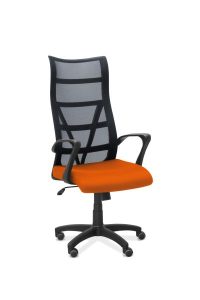 Материалы: спинка — сетка различных цветов, сиденье — ткань, экокожа