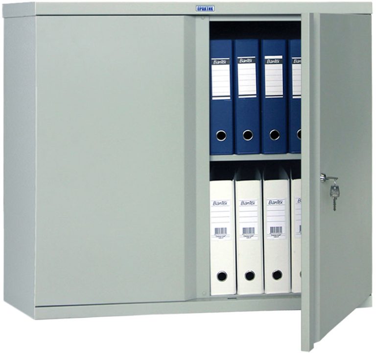Шкаф металлический двухсекционный – подходит для хранения одежды и уборочного инвентаря. Закрывается двумя дверцами на замок. Левая секция шкафа имеет три полки, две из которых регулируются по высоте, в правой секции – одна полка, перекладина и крючки для одежды.