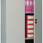 Шкаф металлический двухсекционный – подходит для хранения одежды и уборочного инвентаря. Закрывается двумя дверцами на замок. Левая секция шкафа имеет три полки, две из которых регулируются по высоте, в правой секции – одна полка, перекладина и крючки для одежды.
