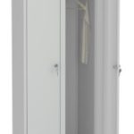 Шкаф металлический двухсекционный – подходит для хранения одежды и уборочного инвентаря. Закрывается двумя дверцами на замок. Левая секция шкафа имеет три полки, две из которых регулируются по высоте, в правой секции – одна полка, перекладина и крючки для одежды.