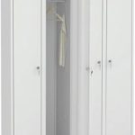 Шкаф металлический двухсекционный – подходит для хранения одежды и уборочного инвентаря. Закрывается двумя дверцами на замок. Левая секция шкафа имеет три полки, две из которых регулируются по высоте, в правой секции – одна полка, перекладина и крючки для одежды.