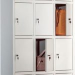 Шкаф металлический двухсекционный – подходит для хранения одежды и уборочного инвентаря. Закрывается двумя дверцами на замок. Левая секция шкафа имеет три полки, две из которых регулируются по высоте, в правой секции – одна полка, перекладина и крючки для одежды.