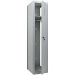 Шкаф металлический двухсекционный – подходит для хранения одежды и уборочного инвентаря. Закрывается двумя дверцами на замок. Левая секция шкафа имеет три полки, две из которых регулируются по высоте, в правой секции – одна полка, перекладина и крючки для одежды.