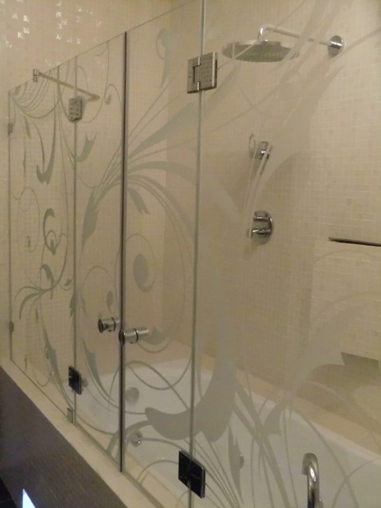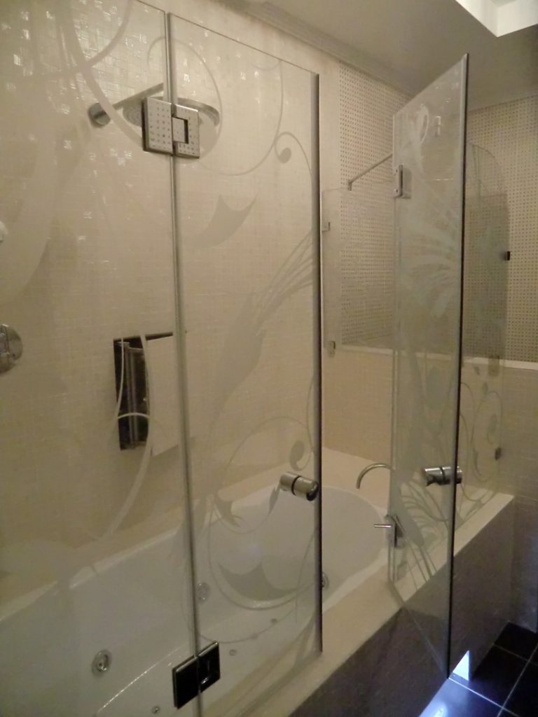 Ширма стеклянная на ванну распашная