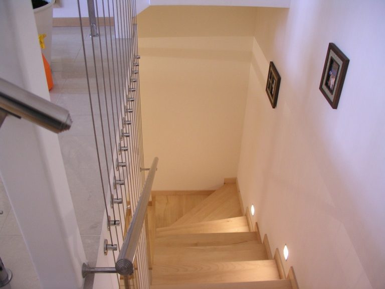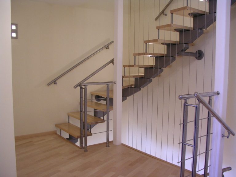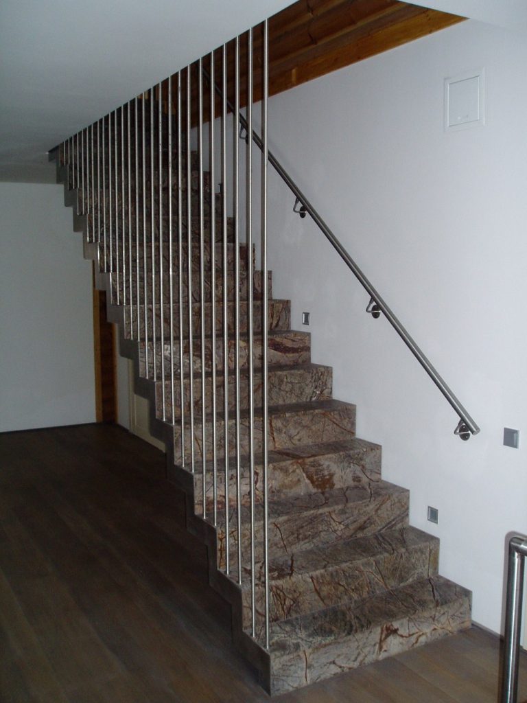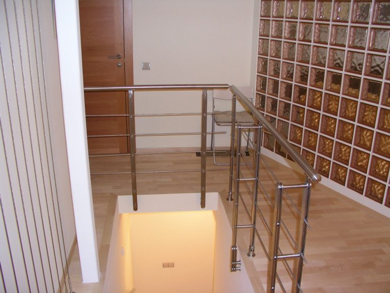 Нестандартное ограждение из нержавеющей стали для лестницы