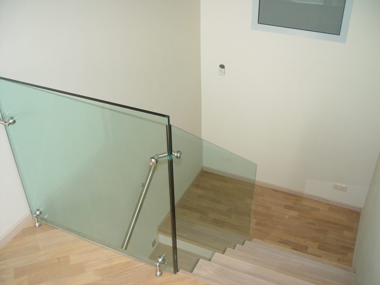 Стеклянное ограждение лестницы на торцевых (точечных) креплениях