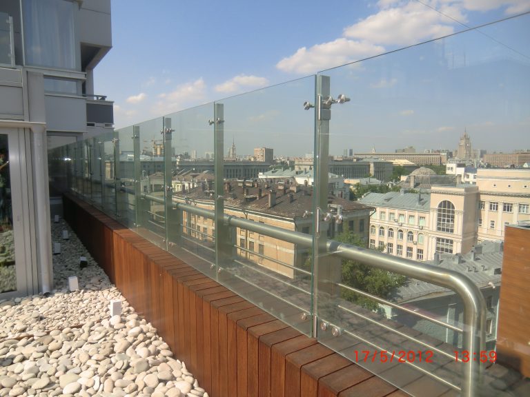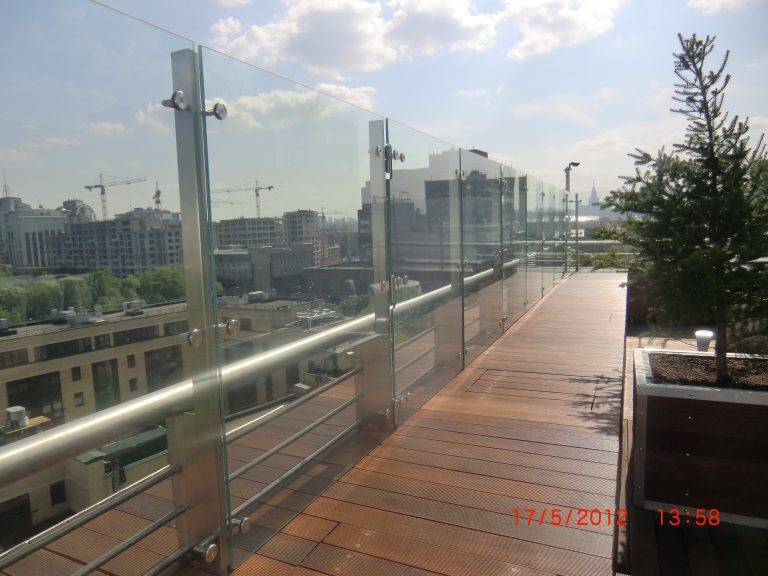 Стеклянное ограждение парапета кровли из стали со стеклом