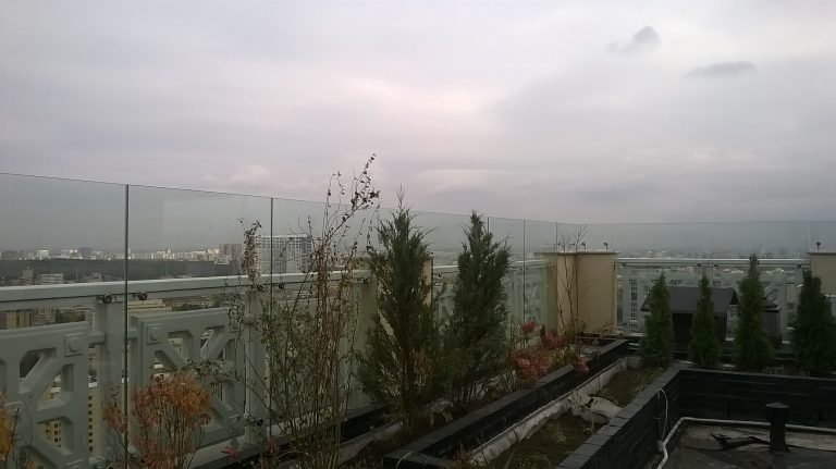 Стеклянное ограждение парапета кровли
