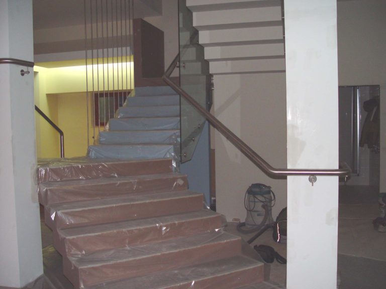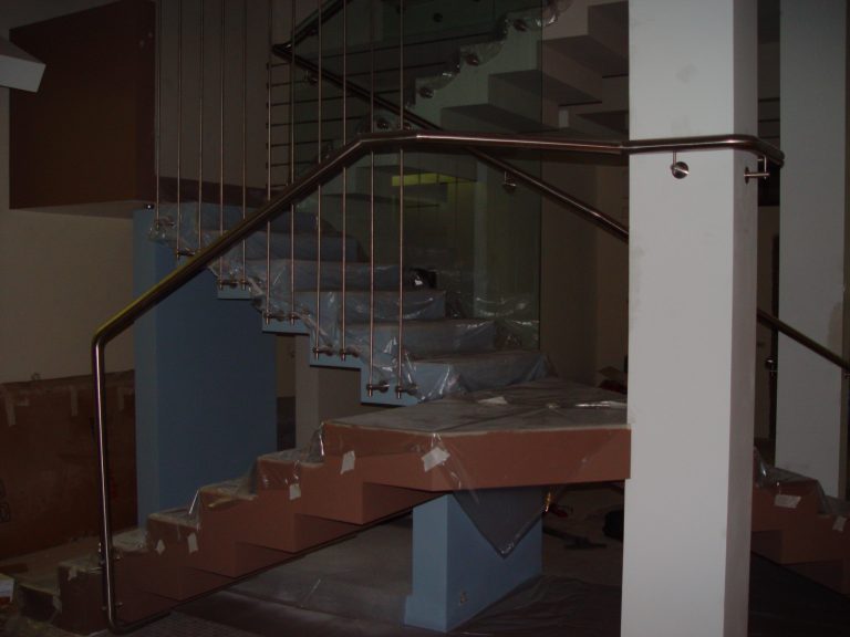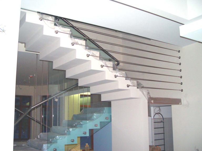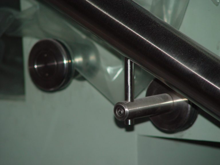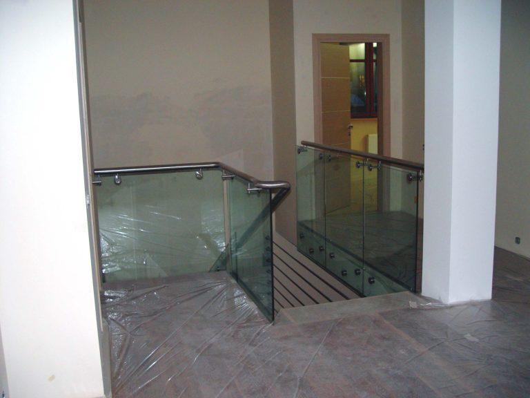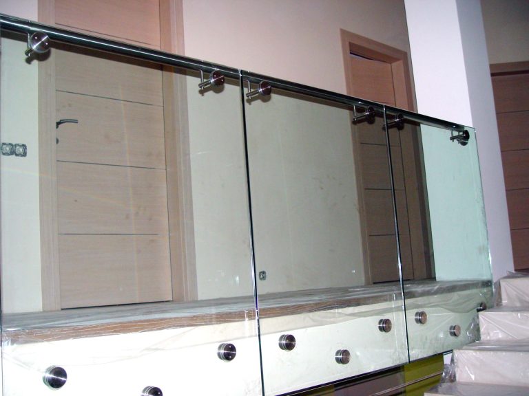 Стеклянные ограждения на точечных крепежах с поручнем