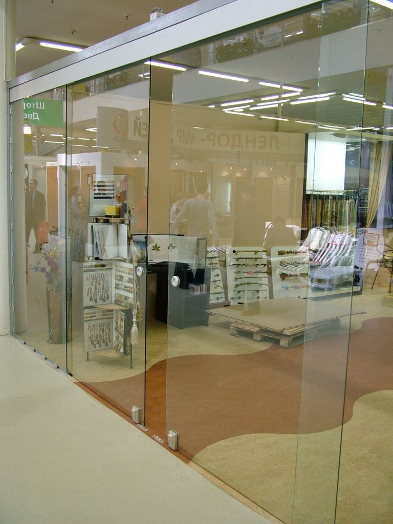 Раздвижная стеклянная дверь для ТЦ