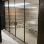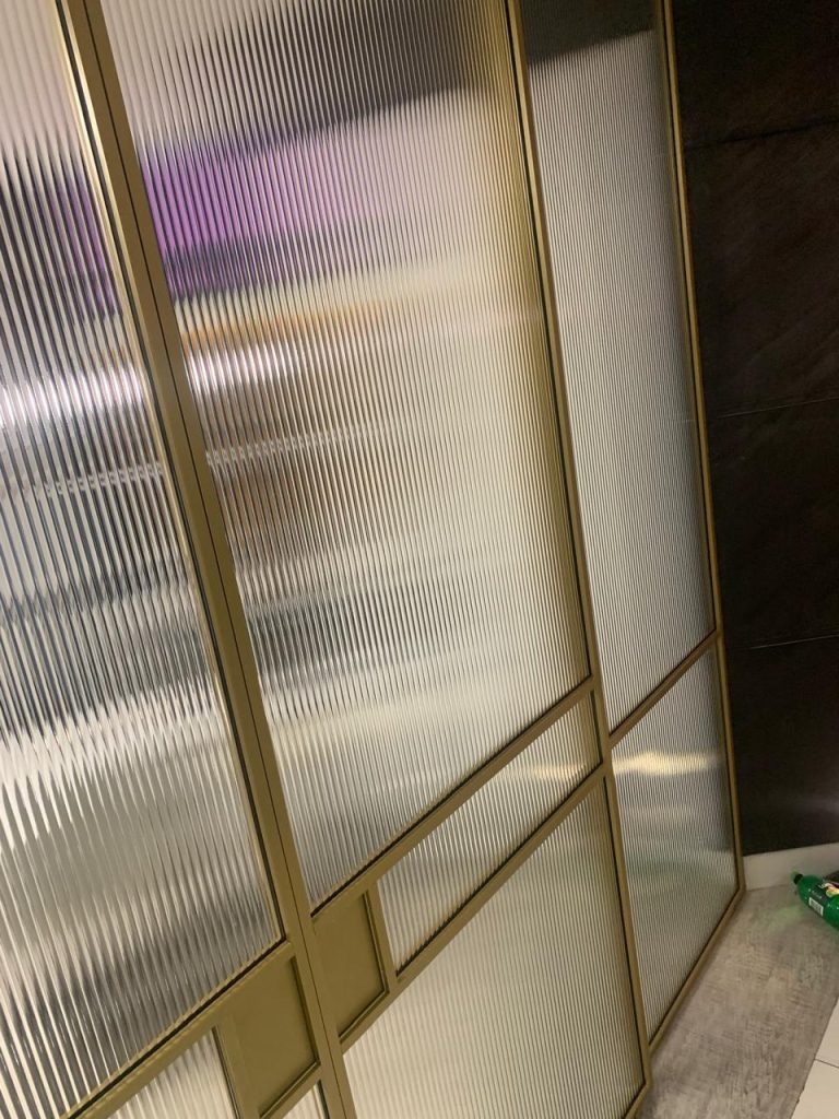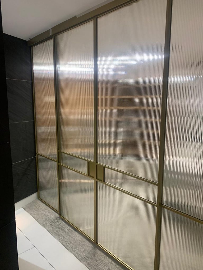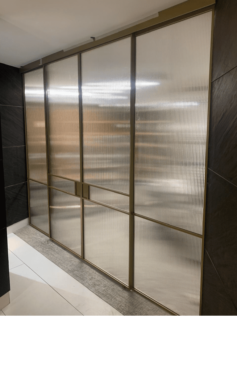 Стеклянные раздвижные перегородки латунь
